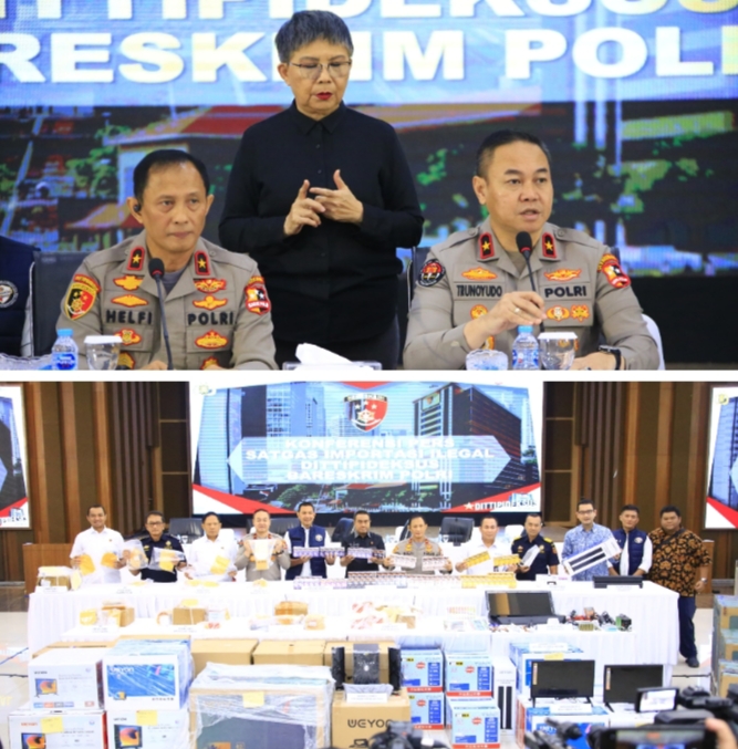 Jakarta // Startimenews.com – Direktorat Tindak Pidana Ekonomi Khusus (Dittipideksus) Bareskrim Polri melalui Satgas Penyelundupan mengungkap empat kasus impor ilegal selama periode tiga bulan terakhir. Penindakan ini dilakukan di daerah Jakarta, Jawa Barat, dan Banten.