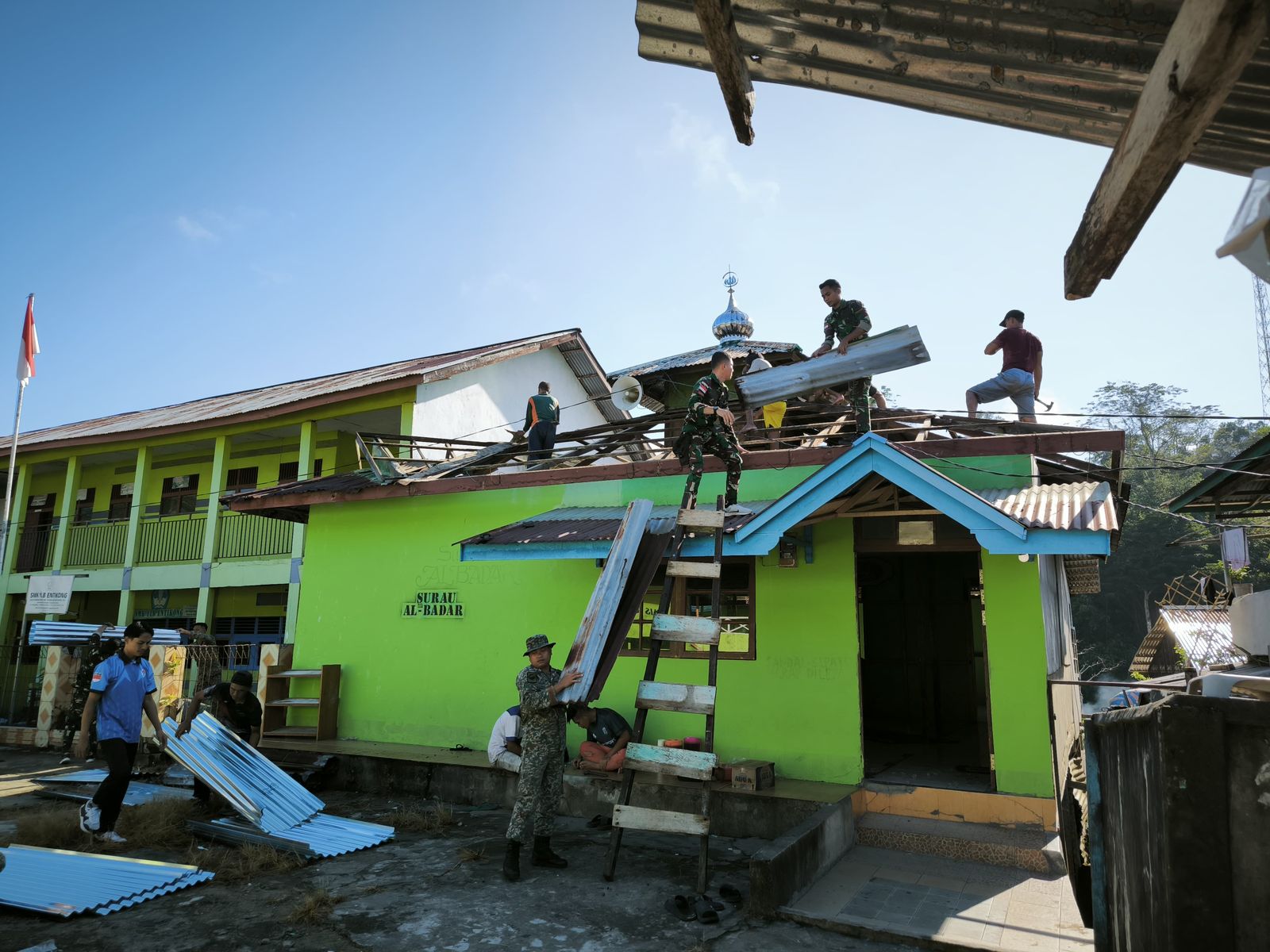 Entikong, Startimenews.com – Satgas Pamtas Yonkav 12/BC Pos Kotis Gabma Entikong bersama masyarakat perbatasan melaksanakan Karya Bhakti di Mushola Al-Badar yang berlokasi di MI Al-Istiqomah Dusun Entikong Ds. Entikong Kec. Entikong Kab. Sanggau-Kalbar, Minggu (20/4/2025).