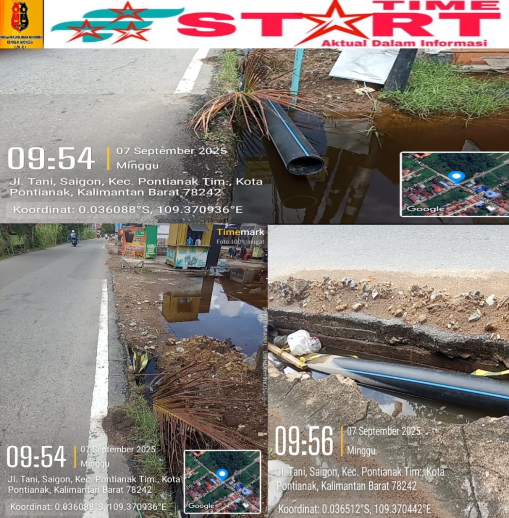 STARTIMENEWS.COM Senin 8 September 2025 pontianak-Kalimantan Barat pelaksanaan pemasangan pipa Jl Tani simpang jalan tekam dan Jl ya,m sabran kota pontianak, paket lanjutan tahun 2024-2025 terkesan asal asalan,