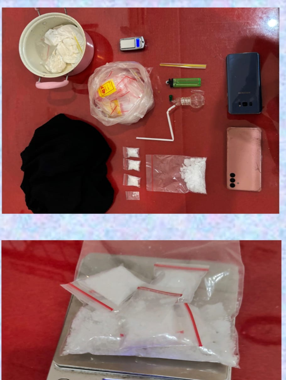 Terduga pelaku berinisial S (53) diamankan di rumahnya setelah petugas menerima informasi bahwa rumah pelaku sering dijadikan lokasi transaksi narkoba. Saat petugas mengamankan pelaku yang disaksikan perangkat warga setempat, petugas juga menyita dari tangan pelaku sejumlah barang bukti berupa 5 kantong klip plastik transparan berisi serbuk kristal diduga narkotika jenis sabu dengan berat total 27,09 gram Brutto, 1 buah timbangan digital, 1 buah alat hisap sabu atau bong, 1 pipet modifikasi sendok sabu, 1 buah korek api serta puluhan lembar klip plastik kosong.