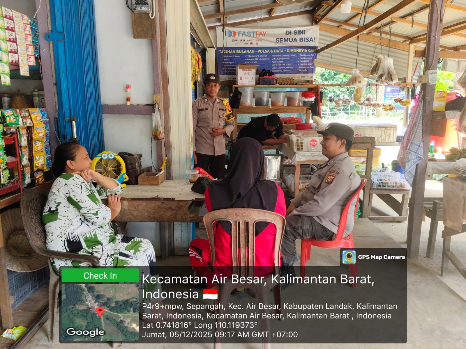 Landak, kalbar//Startimenews.com ~ Polsek Air Besar ~ Polres Landak ~ Polda Kalbar ~ Dalam rangka menjaga situasi keamanan dan ketertiban masyarakat tetap kondusif, personel Polsek Air Besar melaksanakan patroli siang dengan menyambangi para ibu-ibu di warung serta melakukan dialog kamtibmas di sebuah bengkel warga, Jumat (5/12/2025).
