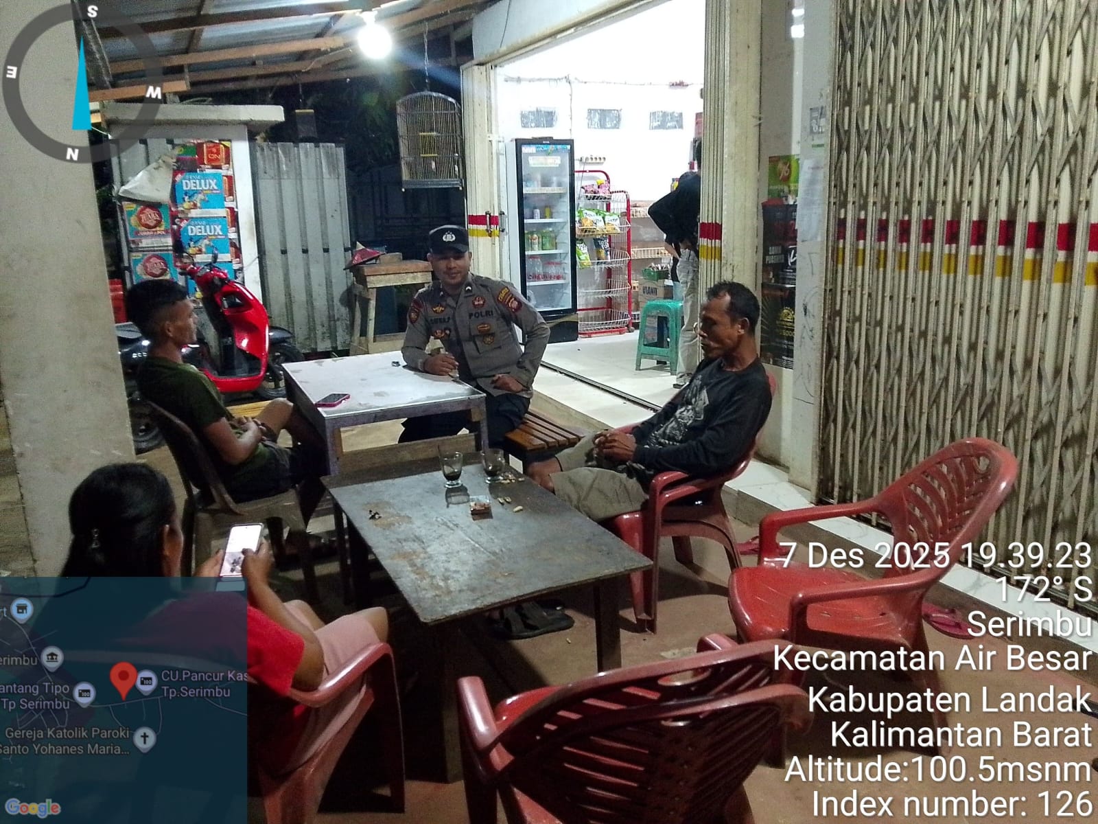 Landak, kalbar//Startimenews.com ~ Polsek Air Besar ~ Polres Landak ~ Polda Kalbar ~ Minggu malam (7/12/2025), jajaran Polsek Air Besar kembali melaksanakan patroli malam sebagai upaya menjaga situasi keamanan dan ketertiban masyarakat (kamtibmas). Dalam kegiatan tersebut, petugas juga menyampaikan himbauan langsung kepada warga agar tetap waspada dan berperan aktif menjaga keamanan lingkungan.