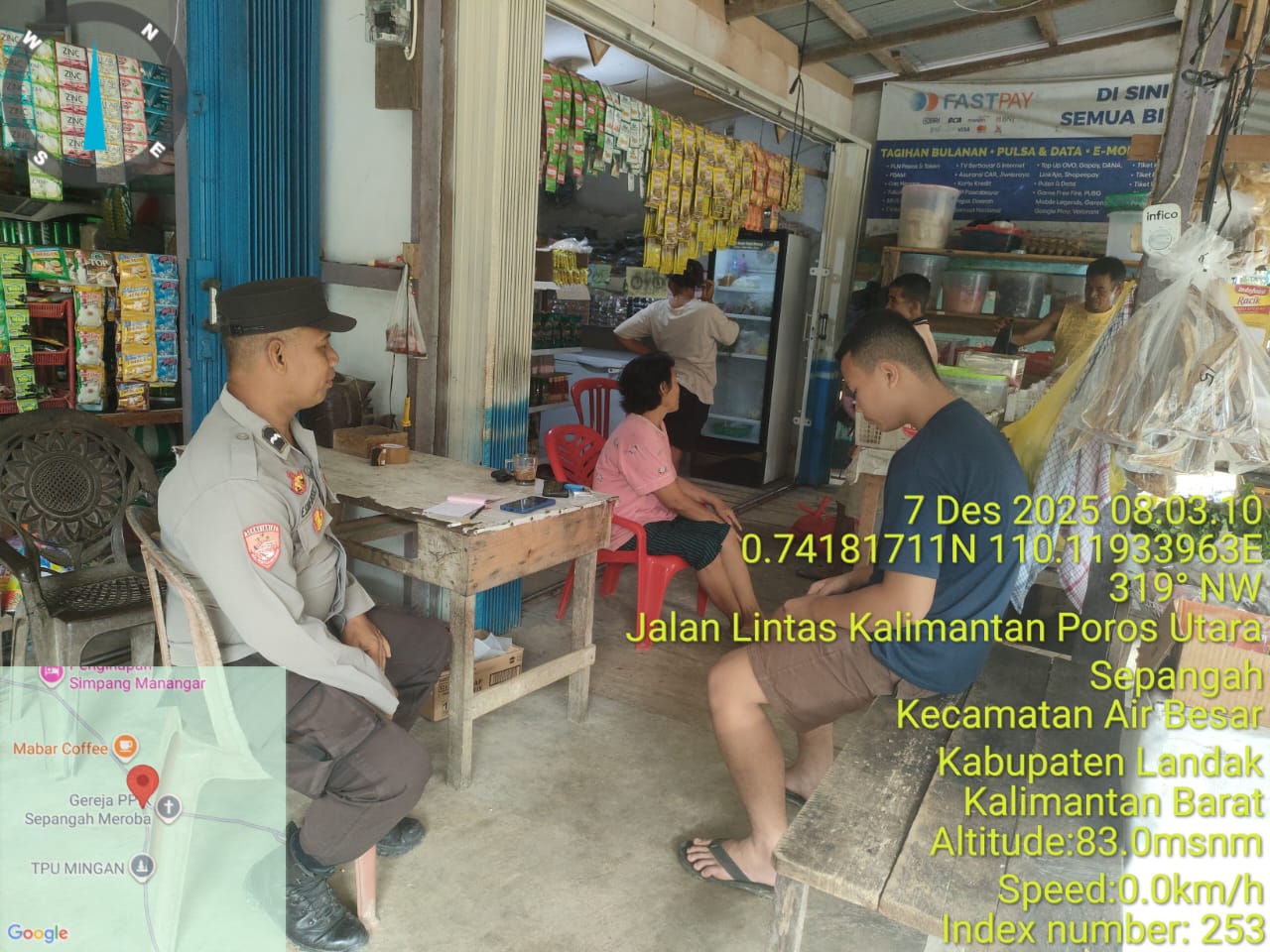 Landak, kalbar // Startimenews.com ~ Polsek Air Besar ~ Polres Landak ~ Polda Kalbar ~ Personel Polsek Air Besar melaksanakan patroli siang dengan menyambangi warga dan pelaku usaha di sepanjang Jalan Lintas Kalimantan Poros Utara, Desa Sepangah, Kecamatan Air Besar. Kegiatan ini dilakukan sebagai upaya menjaga situasi kamtibmas tetap aman dan kondusif menjelang akhir pekan, ” Minggu (7/12/2025)