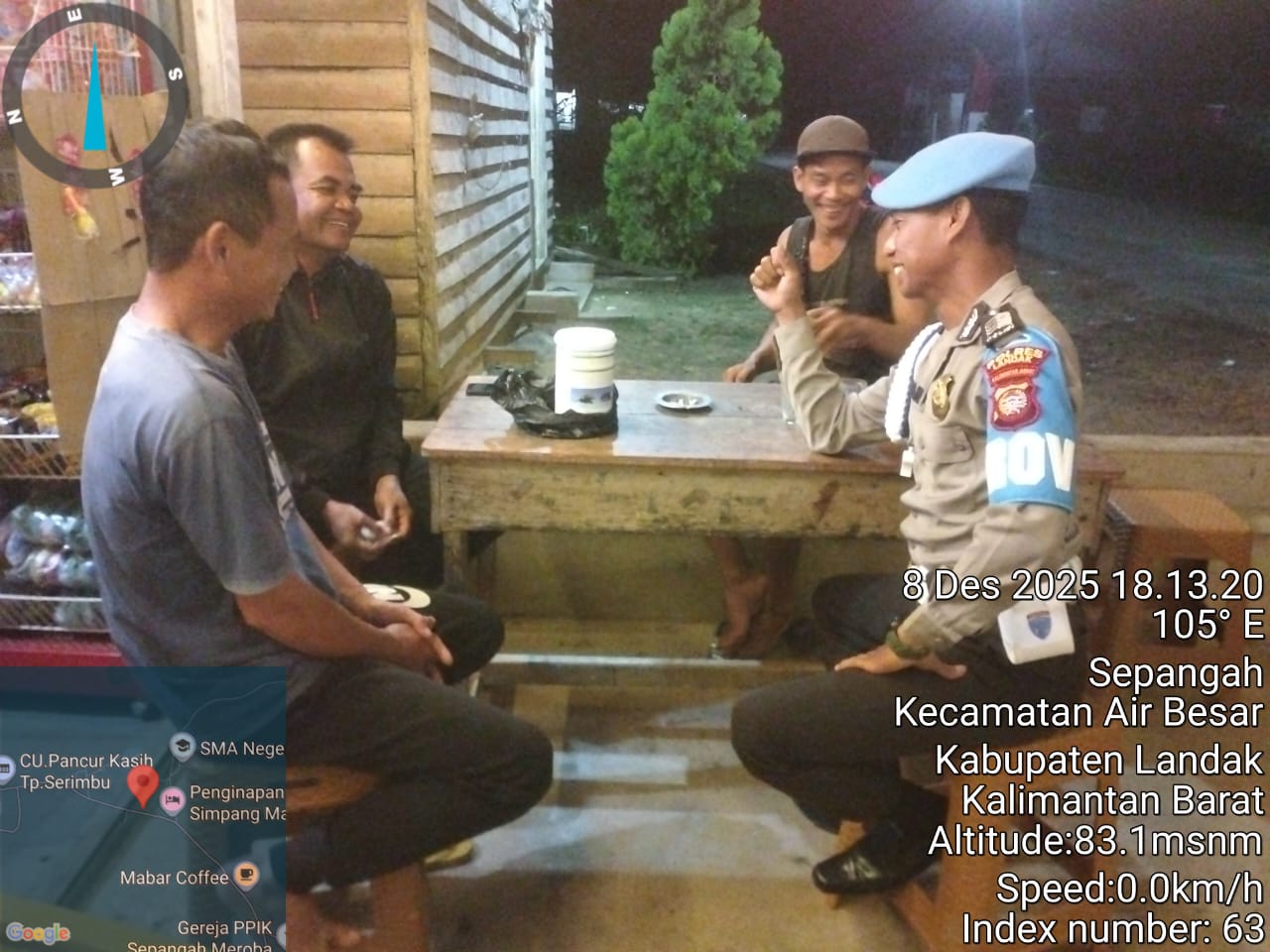Landak, kalbar// Startimenews.com ~ Polsek Air Besar ~ Polres Landak ~ Polda Kalbar ~ Senin malam (8/12/2025) – Suasana malam di Kecamatan Air Besar tampak lebih kondusif berkat patroli rutin yang digelar personel Polsek Air Besar. Kegiatan patroli tersebut menyasar sejumlah titik rawan sebagai langkah preventif menjaga keamanan dan ketertiban masyarakat.