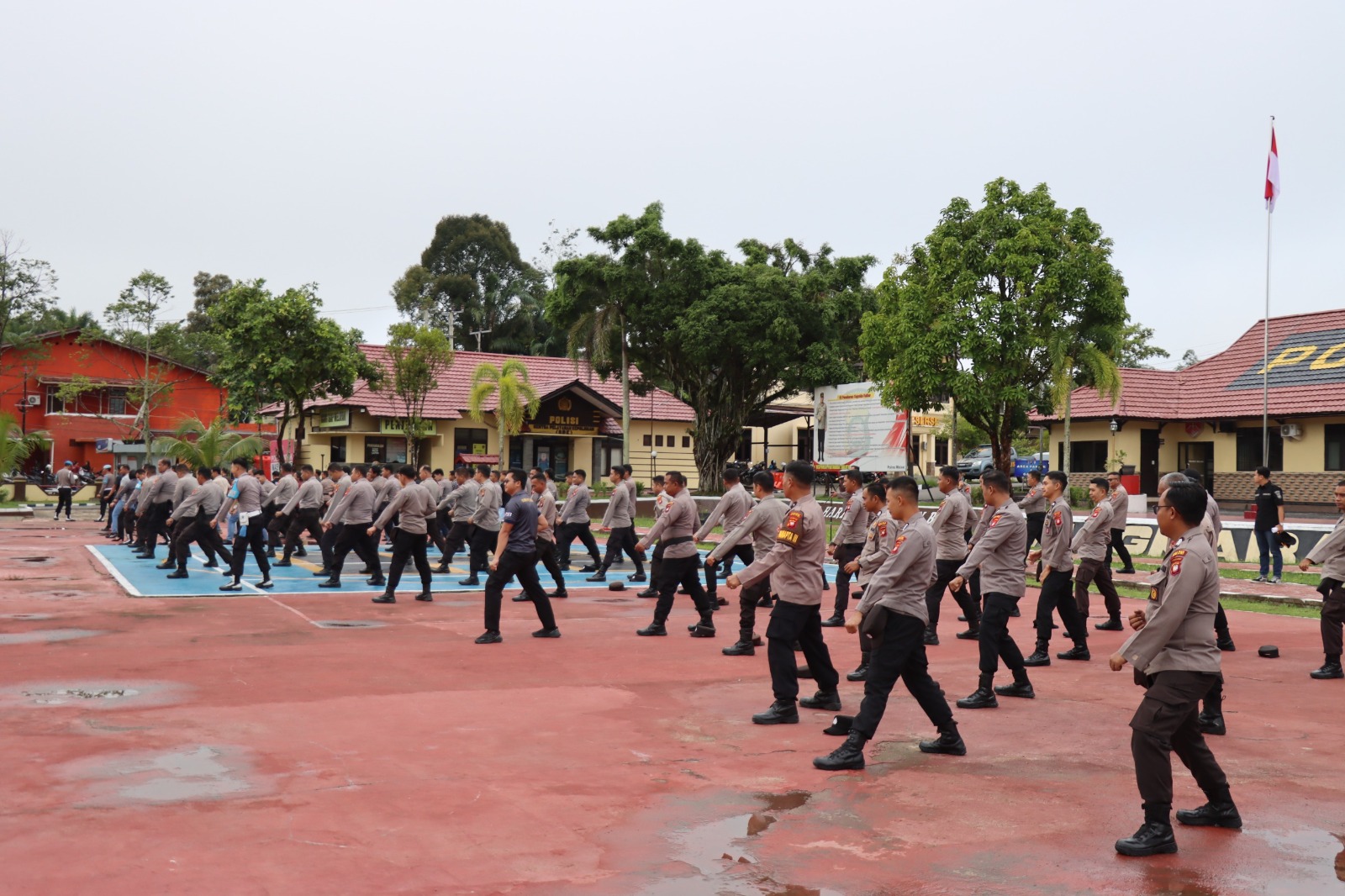 Latihan berjalan dengan tertib dan penuh semangat. Wakapolres Melawi juga sesekali memberikan koreksi serta motivasi agar personel tetap fokus dan mengutamakan keselamatan selama latihan.