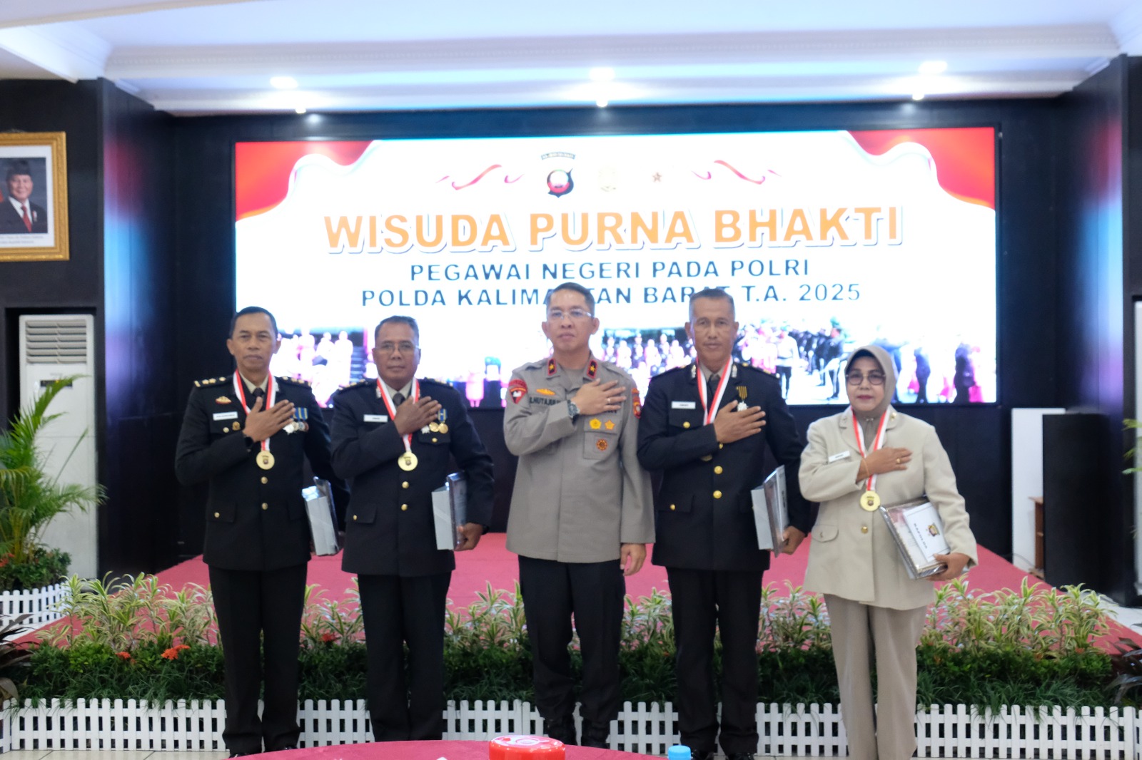 Sebanyak 59 personel Polda Kalbar, terdiri dari anggota Polri dan PNS Polri, yang telah memasuki masa pensiun terhitung sejak 1 Desember 2024 hingga 1 Desember 2025, secara resmi diwisuda dalam acara tersebut.
