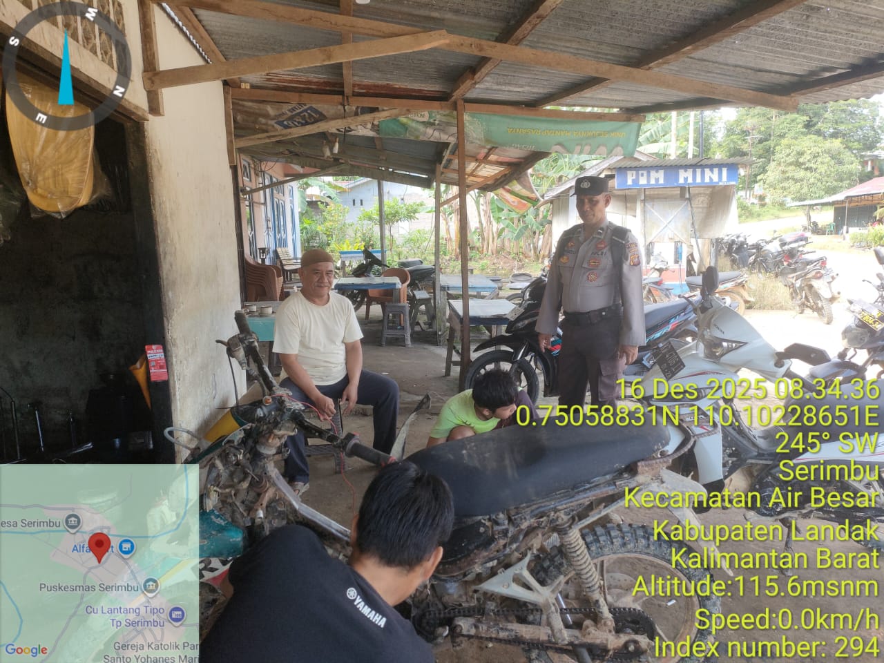 Landak, kalbar// Startimenews.com ~ Polsek Air Besar ~ Polres Landak ~ Polda Kalbar ~ Dalam upaya menjaga keamanan dan ketertiban masyarakat (kamtibmas), jajaran Kepolisian Sektor Air Besar melaksanakan kegiatan sambang ke sejumlah bengkel di wilayah hukumnya. Kegiatan tersebut dilaksanakan pada Selasa (16/12/2025) dan berlangsung dengan suasana humanis serta penuh keakraban.