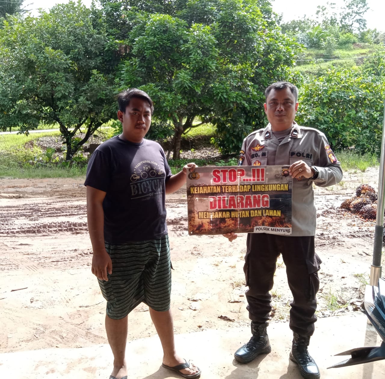 Kapolres Landak AKBP Devi Ariantari, S.H., S.I.K., melalui Kapolsek Menyuke AKP Aswin Mahawan, SH.MH. Mengatakan bahwa Anggota kami yang memberikan imbauan adalah untuk memberikan pemahaman kepada masyarakat, tentang bahaya dan dampak dari bahaya membakar lahan dan hutan bagi kehidupan masyarakat baik secara ekonomi maupun dampak bagi kesehatan.