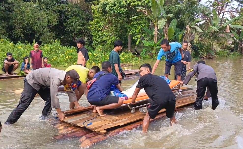 Pemulangan jenazah sempat tertunda karena jalan utama di wilayah Kecamatan Beduai terendam banjir, sehingga diperlukan koordinasi lintas sektor untuk memastikan proses evakuasi dapat tetap dilaksanakan.