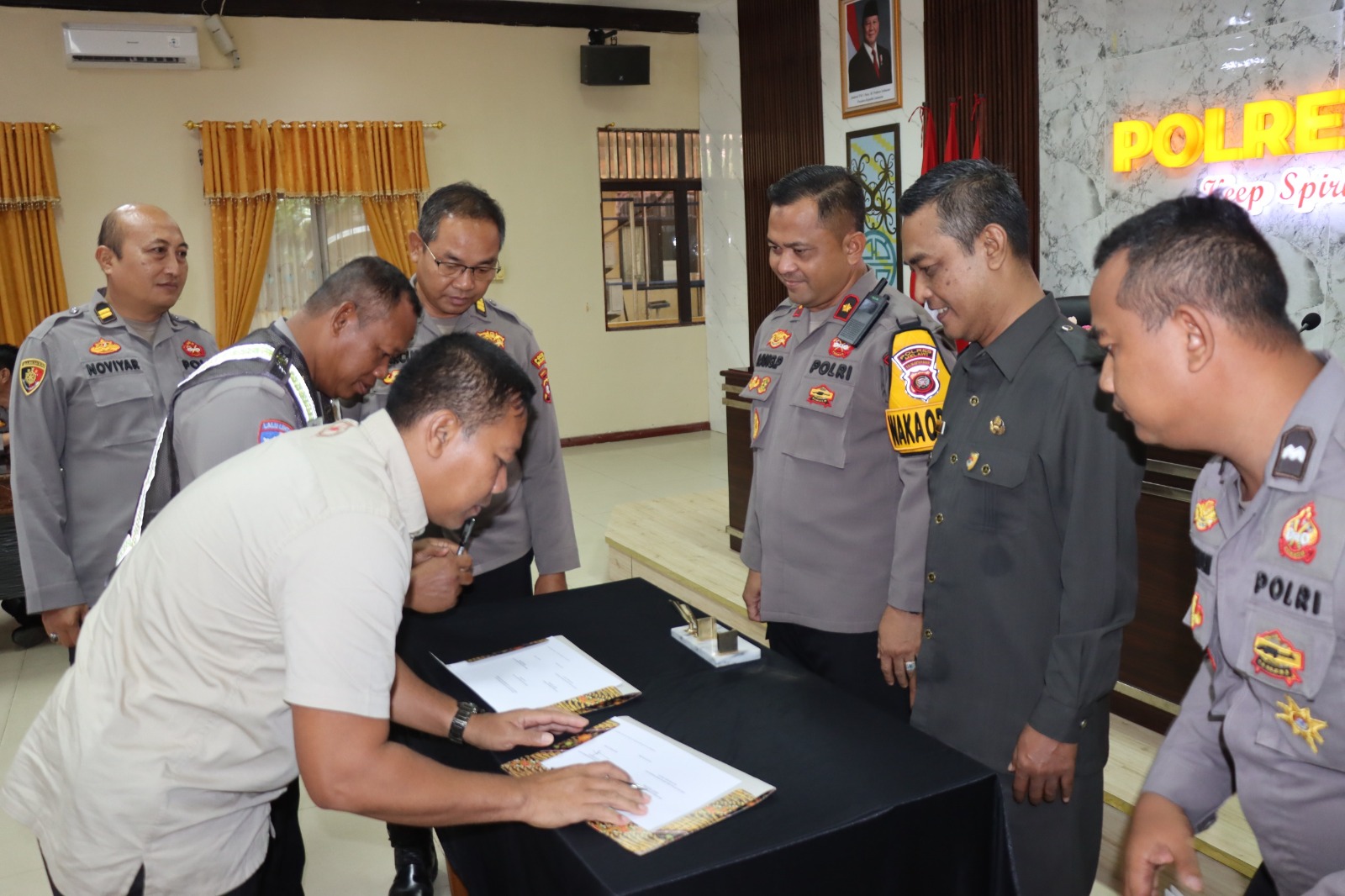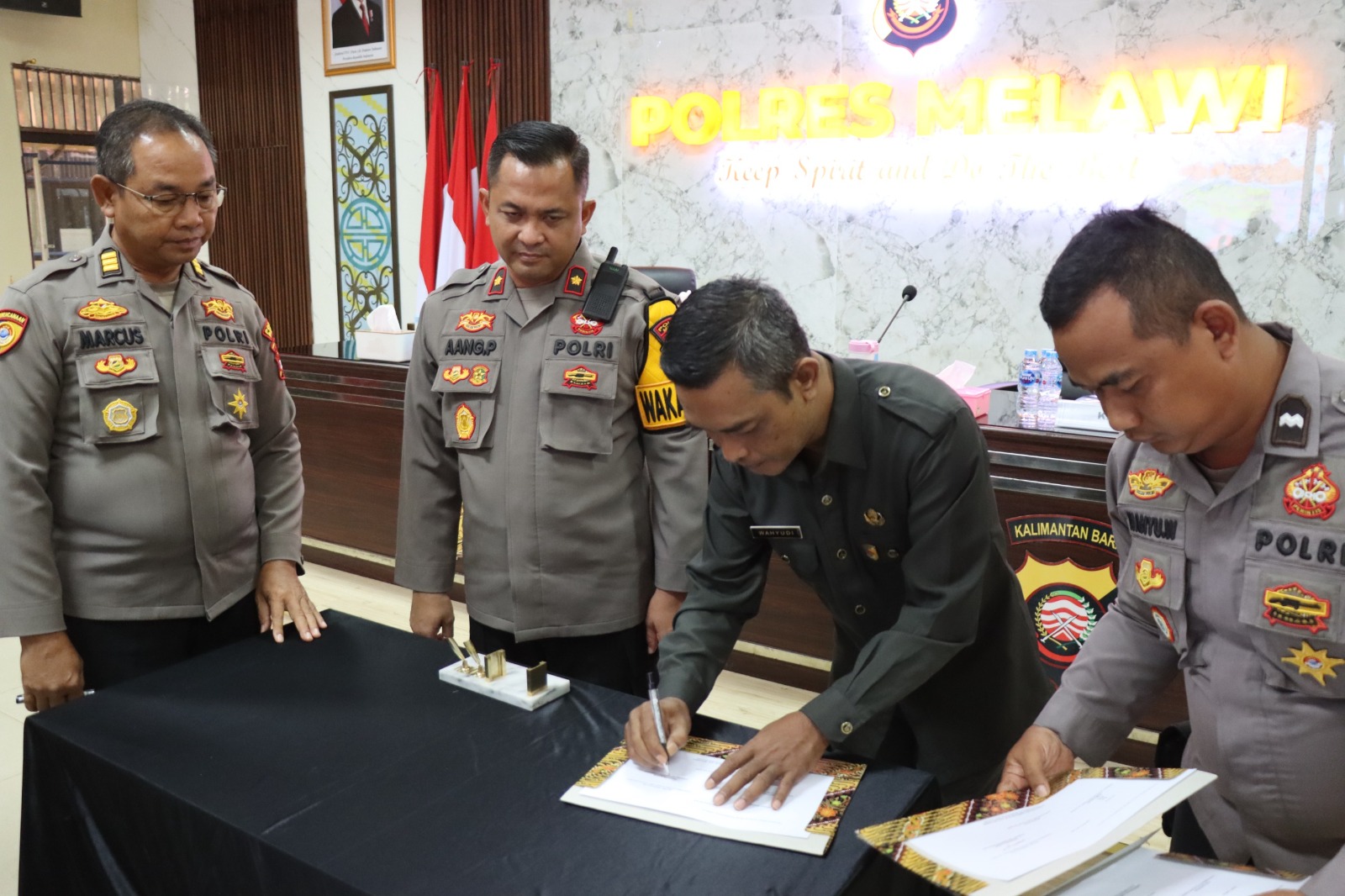 Rangkaian kegiatan dilanjutkan dengan penandatanganan Berita Acara Evaluasi Pelayanan Publik oleh Kasat Lantas, Kasat Intelkam, Kasat Reskrim, dan Ka SPKT Polres Melawi. Setelah itu, paparan pembangunan Zona Integritas disampaikan oleh anggota tim AKP Susana Suku Tola, S.H, yang memaparkan progres, tantangan, serta strategi penguatan ZI di lingkungan Polres Melawi.