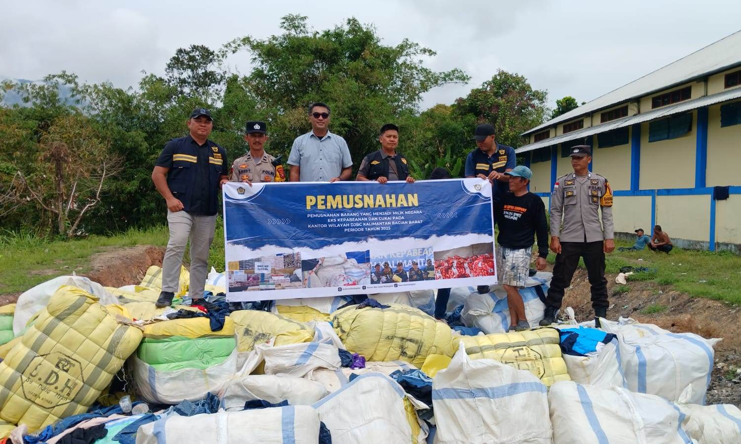 Pemusnahan dilakukan setelah seluruh barang ditetapkan menjadi milik negara melalui proses hukum yang berlaku. Ratusan bale pakaian bekas tersebut diketahui merupakan hasil penindakan aparat terhadap barang yang masuk tanpa memenuhi ketentuan kepabeanan dan berpotensi merugikan perekonomian nasional.