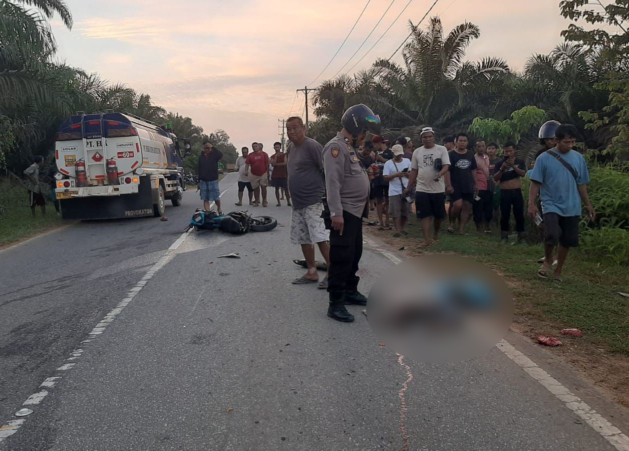 Ketika tiba di lokasi kejadian yang merupakan jalan aspal hitam dengan kondisi tikungan, tanjakan, serta terdapat cekungan pada badan jalan, sepeda motor diduga kehilangan kendali. Kendaraan roda dua itu kemudian menabrak bagian bemper depan sebelah kanan truk boks.