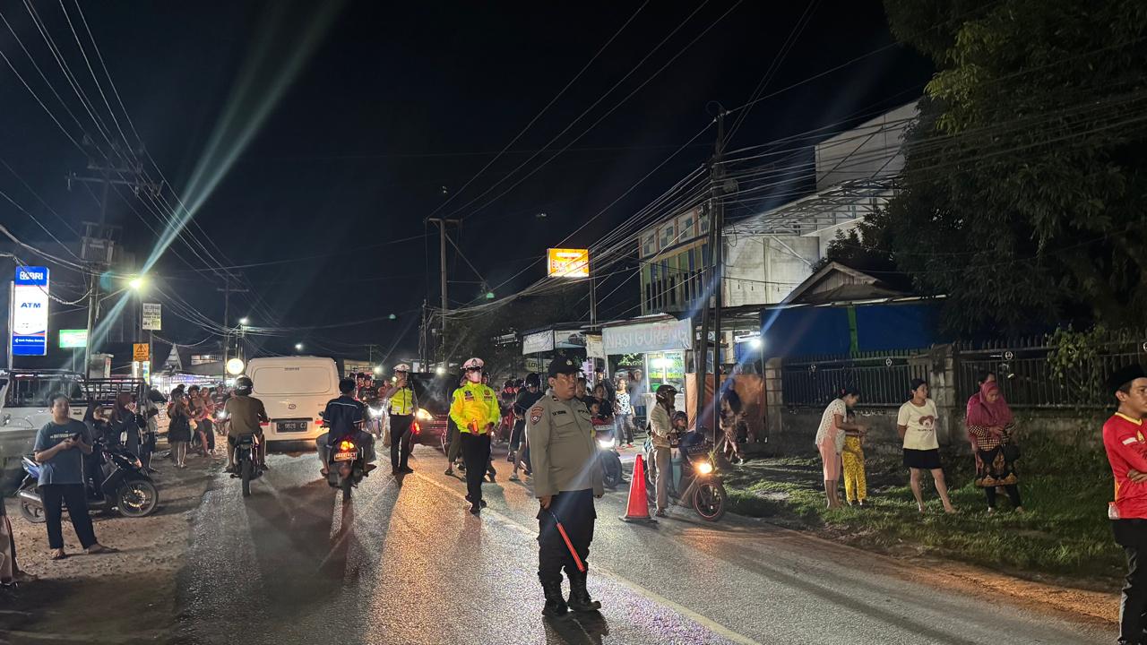 Landak,kalbar ~ startimenews.com ~ Polsek Ngabang – Polres Landak – Polda Kalbar, Jajaran Polsek Ngabang dan Polres Landak melaksanakan pengamanan kegiatan Pawai Obor dalam rangka menyambut Bulan Suci Ramadhan 1447 Hijriah Tahun 2026 yang digelar pada Selasa (17/2/2026) malam.