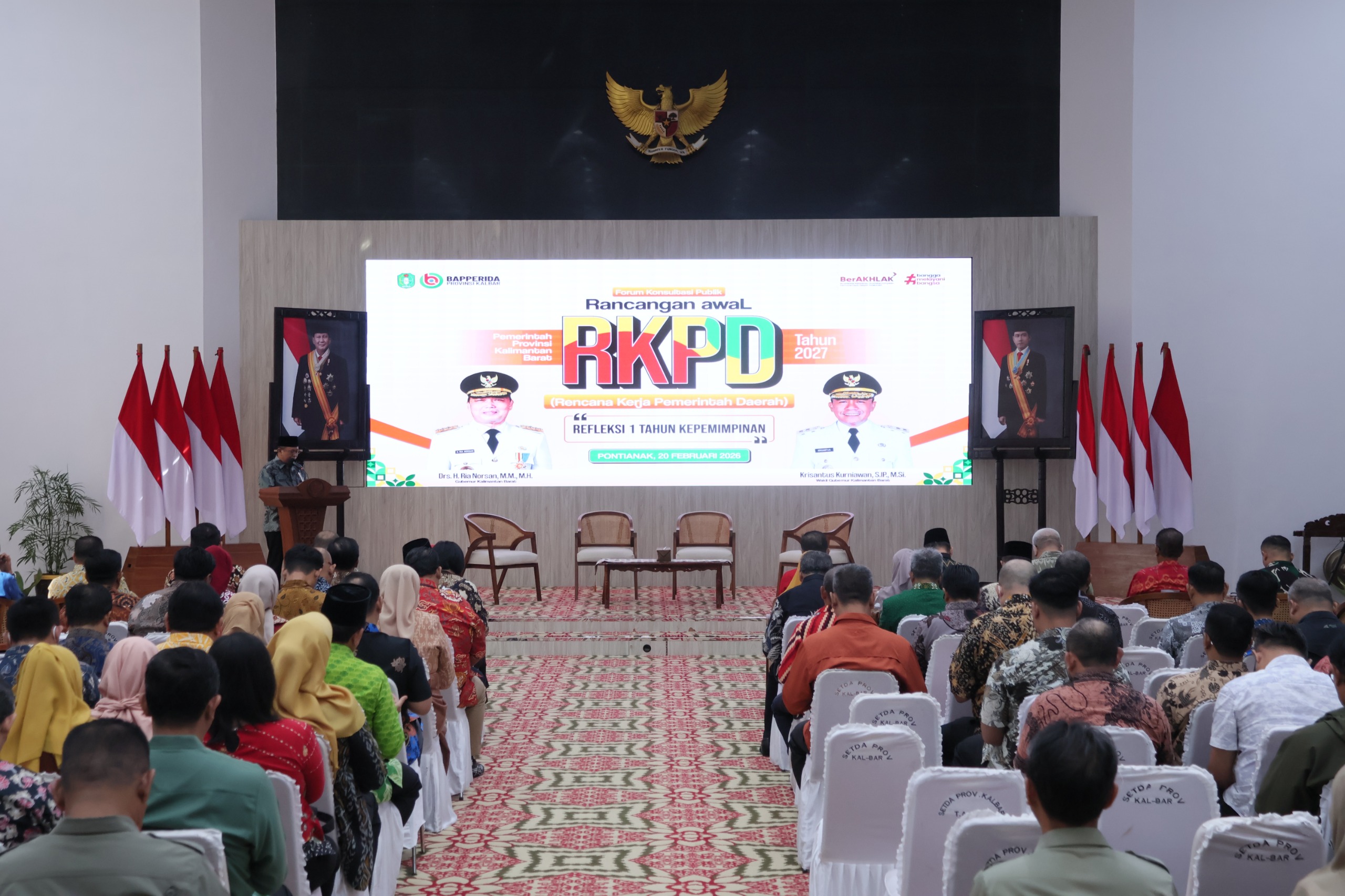 Pontianak – startimenews.com Kapolda Kalimantan Barat yang diwakili oleh Karorena Polda Kalbar Kombes Pol Dra. Yulia Agustin Selfa Triana, M.M., menghadiri Forum Konsultasi Publik Rancangan Awal Rencana Kerja Pemerintah Daerah (RKPD) Provinsi Kalimantan Barat Tahun 2027, yang dilaksanakan pada Jumat (20/2/2026) di Balai Petitih Kantor Gubernur Kalimantan Barat.