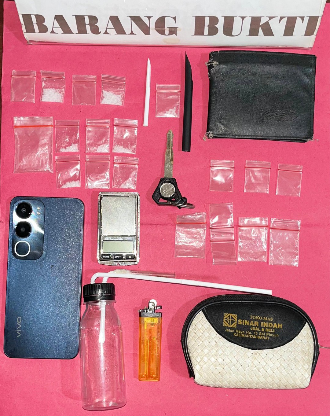 Tak hanya itu, petugas juga menyita satu unit handphone merk Vivo warna Glossy Black lengkap dengan kartu SIM yang diduga digunakan sebagai sarana komunikasi dalam aktivitas peredaran narkoba.