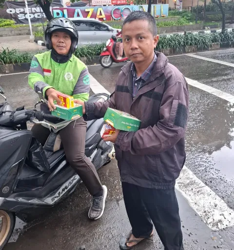 ​Antusiasme warga terlihat sangat tinggi saat proses pembagian berlangsung. Para driver ojol yang sedang menunggu pesanan maupun masyarakat yang melintas tampak tertib untuk mendapatkan paket berbuka puasa tersebut.