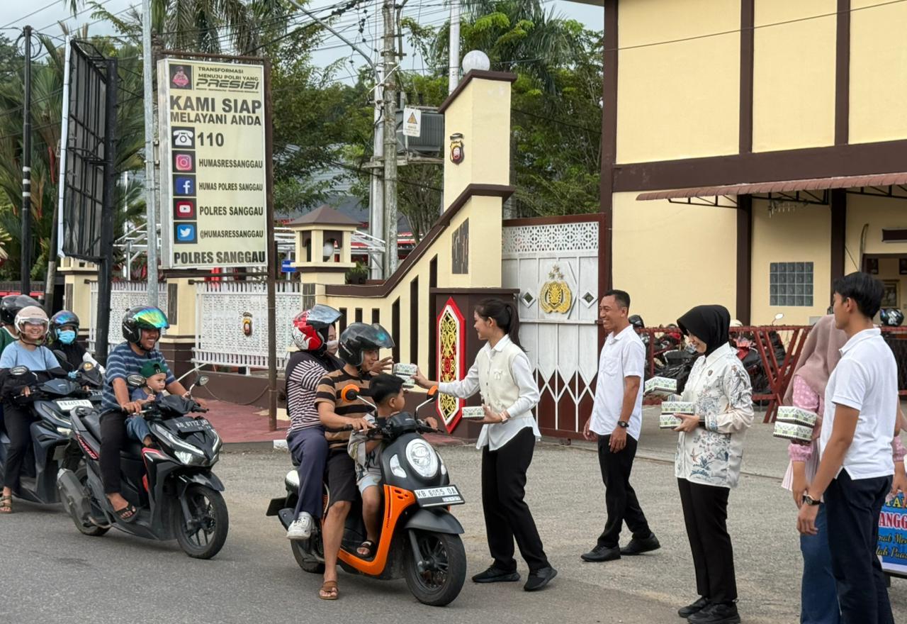 Dalam kegiatan tersebut, personel Sat Reskrim Polres Sanggau membagikan sebanyak 100 kotak takjil yang berisi snack dan air mineral. Takjil tersebut diberikan secara langsung kepada pengendara roda dua, roda empat, serta masyarakat yang melintas di sekitar lokasi kegiatan.