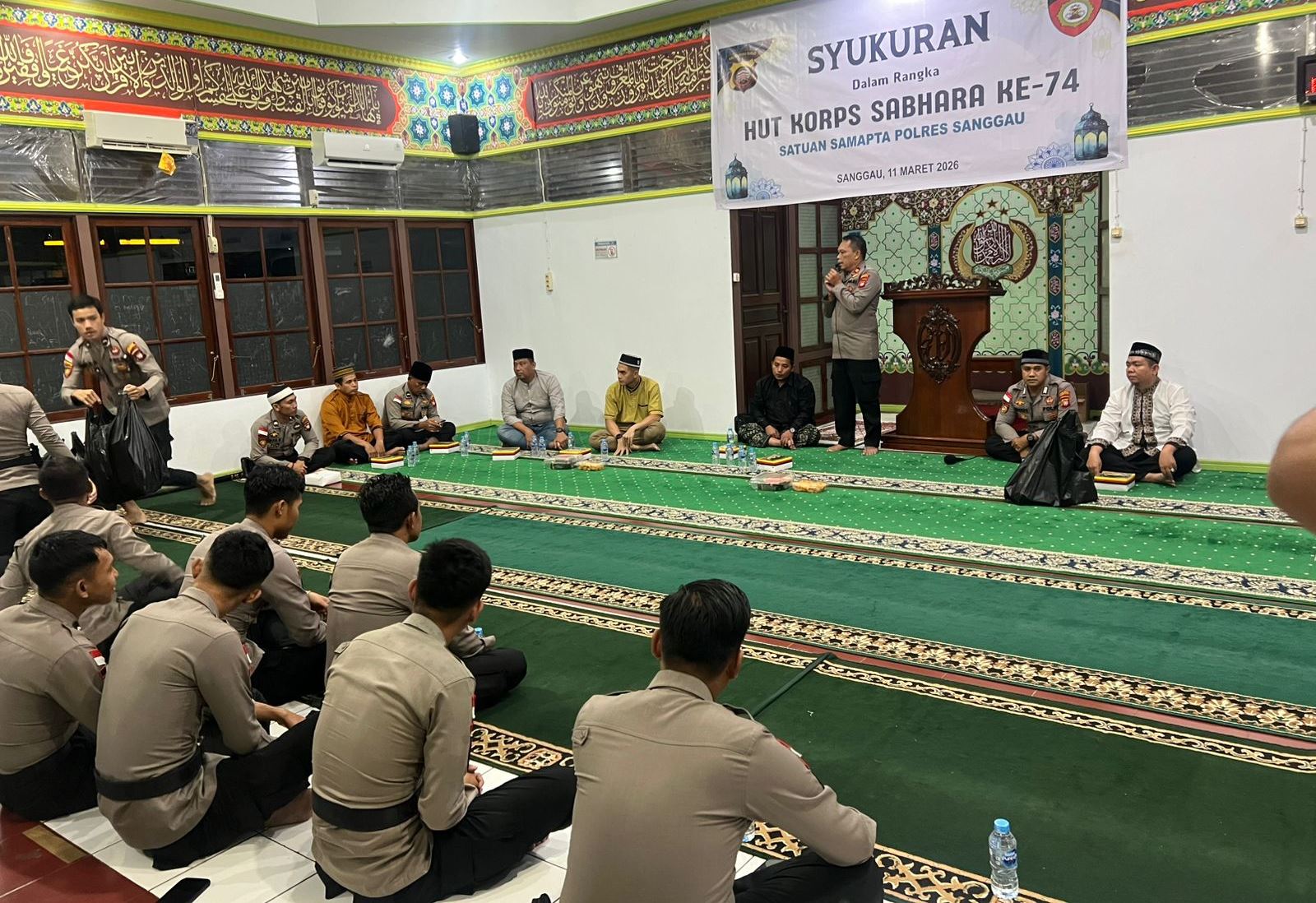 Sesuai rencana, pada malam harinya dilaksanakan kegiatan syukuran dalam rangka Hari Korps Sabhara ke-74 di Masjid Al Hikmah Sanggau. Kegiatan tersebut menjadi bentuk rasa syukur sekaligus refleksi pengabdian Korps Sabhara dalam menjaga keamanan dan ketertiban masyarakat.