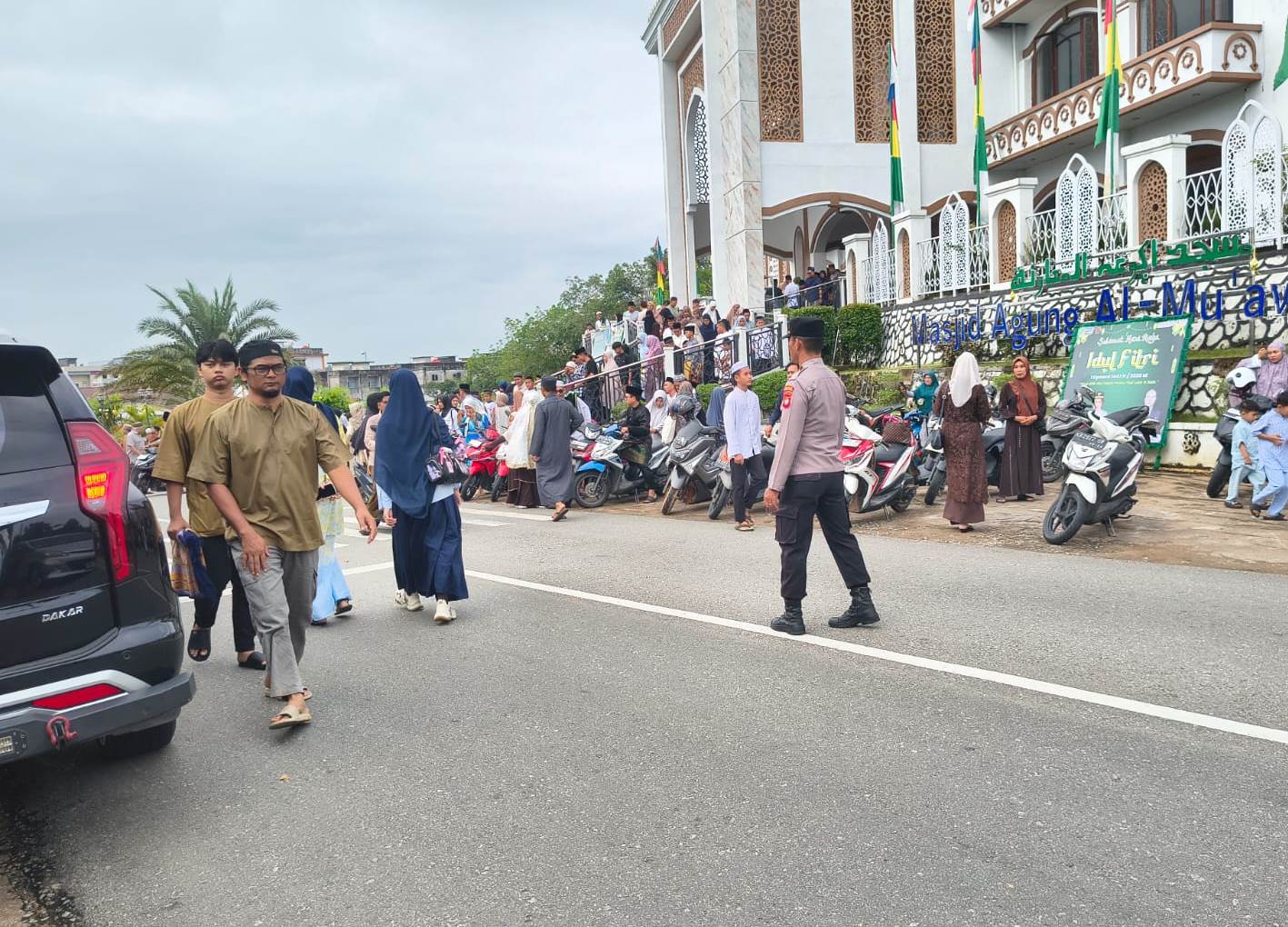 Sebanyak kurang lebih 1.500 jamaah memadati area masjid untuk melaksanakan Sholat Idul Fitri secara berjamaah. Kehadiran aparat kepolisian memberikan rasa aman dan nyaman bagi masyarakat dalam menjalankan ibadah di hari kemenangan tersebut.