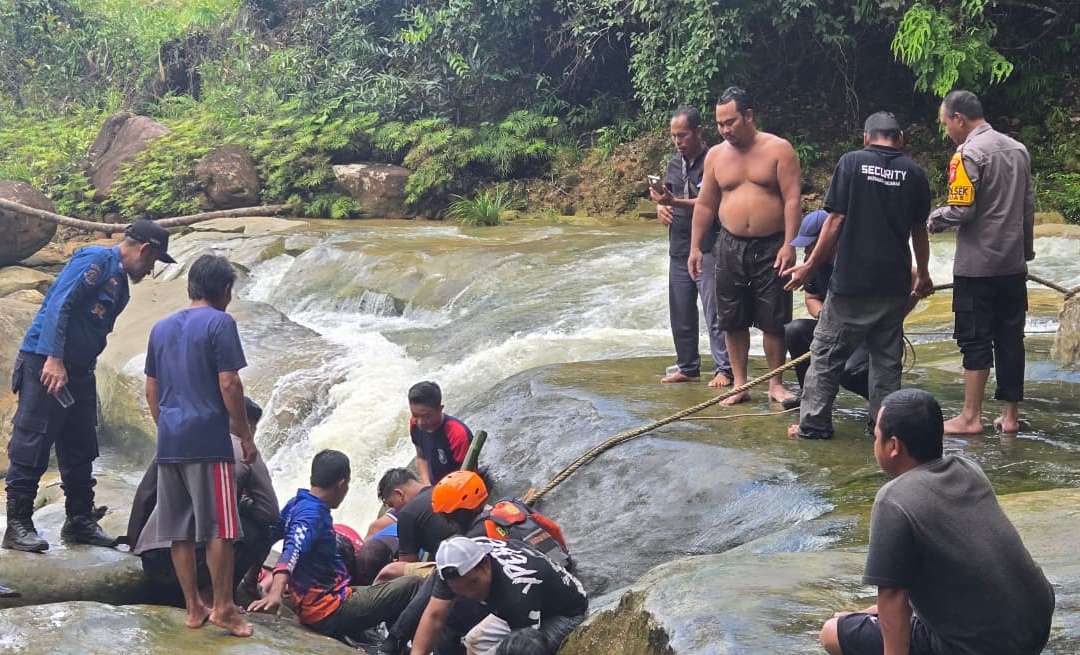 Namun, situasi berubah menjadi petaka saat sekitar pukul 17.19 WIB, korban duduk di area bebatuan dengan arus air yang cukup deras. Tanpa diduga, korban terpeleset dan terseret arus hingga masuk ke dalam rongga di antara bebatuan.