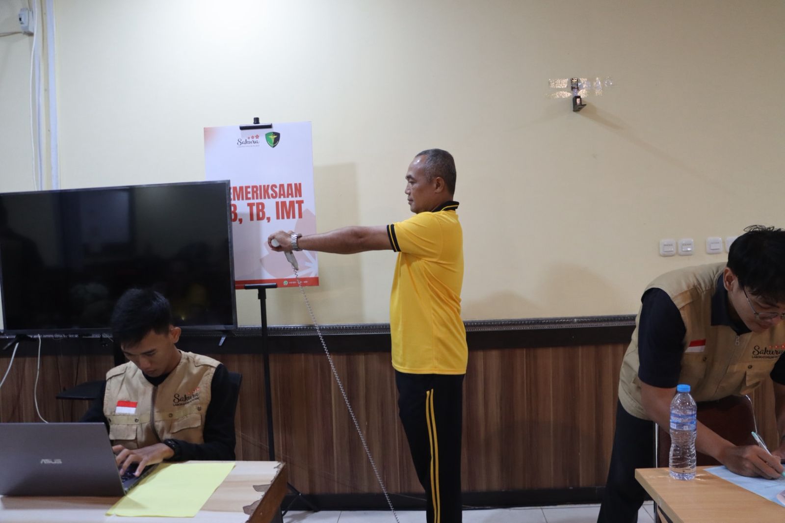 Pemeriksaan kesehatan yang dilakukan mencakup berbagai aspek penting, mulai dari pemeriksaan fisik oleh dokter, pengambilan sampel darah dan urine, hingga pemeriksaan kebugaran melalui treadmill. Selain itu, dilakukan pula pengukuran tinggi dan berat badan untuk menghitung Indeks Massa Tubuh (IMT).