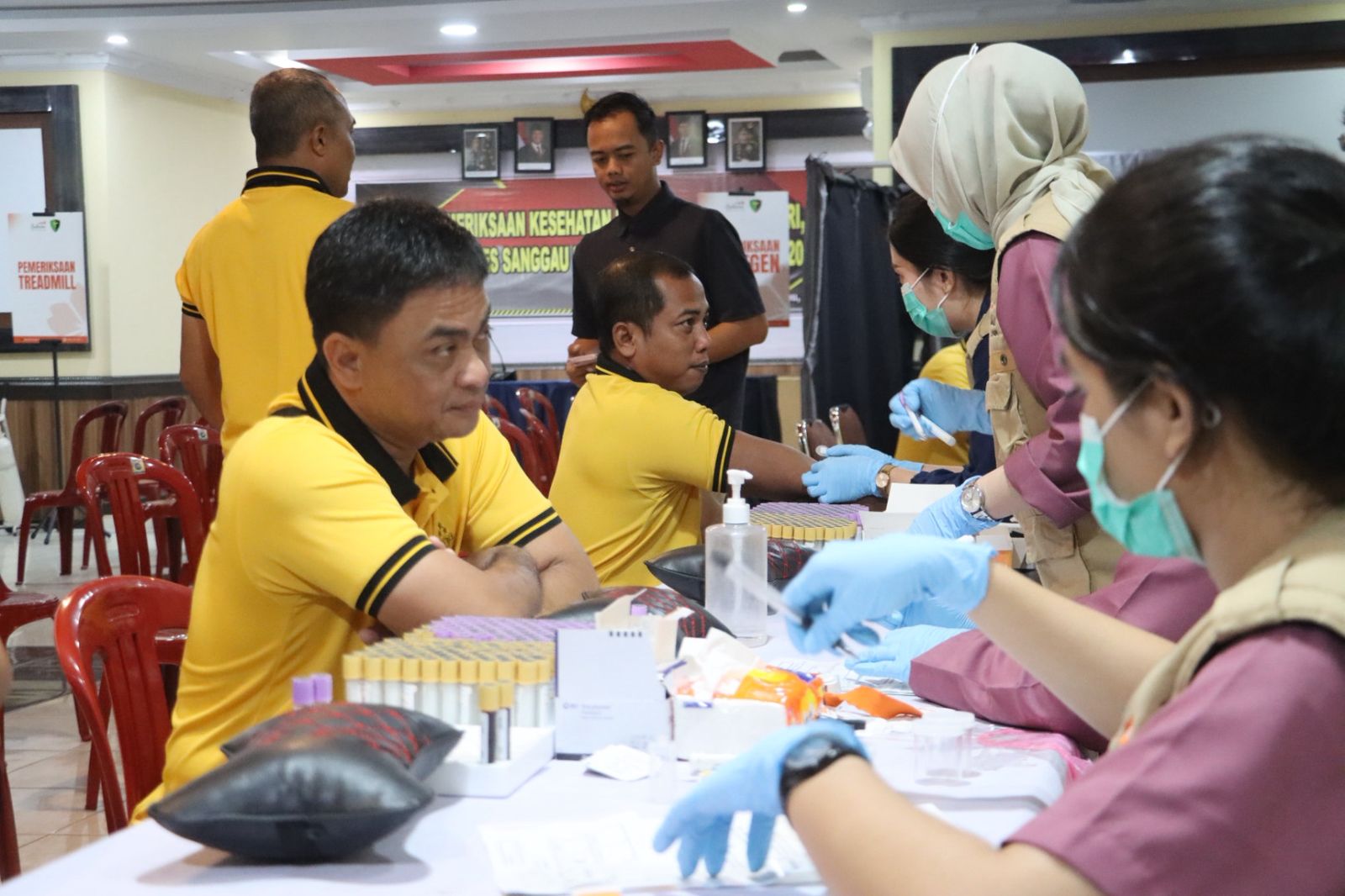 Kegiatan tersebut merupakan bagian dari program rutin yang bertujuan memantau kondisi kesehatan anggota secara menyeluruh. Pemeriksaan dilakukan secara terpadu dengan melibatkan tim medis dari Biddokkes Polda Kalbar serta tenaga profesional dari Klinik Laboratorium Sakura Pontianak.Hadir dalam kegiatan ini para Pejabat Utama (PJU) Polres Sanggau, para Kapolsek jajaran, serta tim pendamping medis yang dipimpin oleh Iptu Wage Herlambang, A. Md. Kes. Selain itu, kegiatan ini juga didukung oleh Ps. Kasi Dokkes Polres Sanggau, Aiptu Surip Sunaryo, bersama seluruh personel yang mengikuti pemeriksaan.
