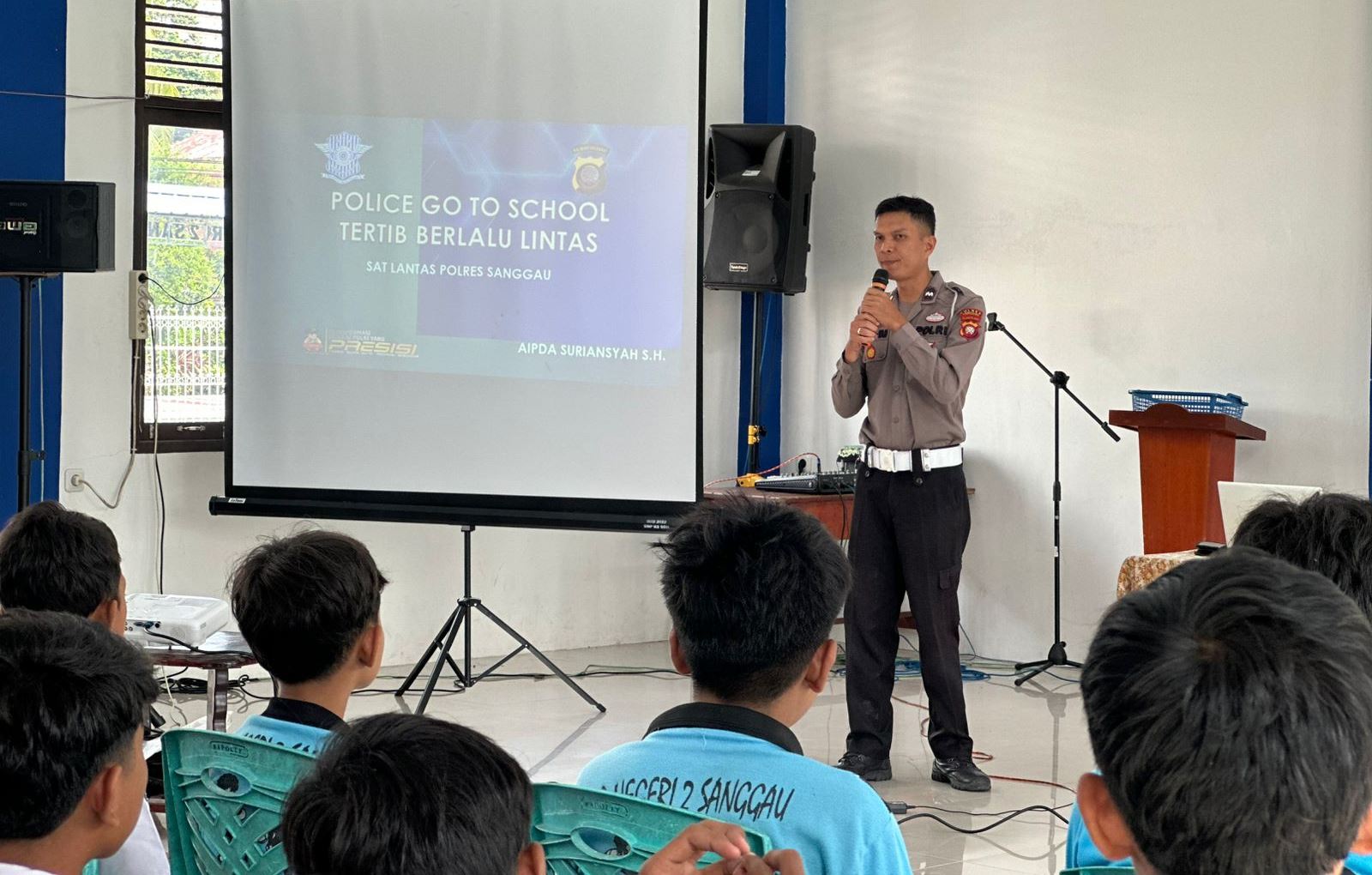 Kegiatan tersebut dipimpin langsung oleh Ps. Kanit Kamsel Sat Lantas Polres Sanggau, Aipda Suriansyah, S.H., bersama personel Unit Kamsel. Kehadiran polisi di lingkungan sekolah disambut antusias oleh para siswa dan pihak sekolah yang mendukung penuh program edukatif tersebut.