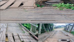 Desa Meranti Kecamatan Meranti Kabupaten Landak Mengeluhkan rusaknya jembatan penghubung